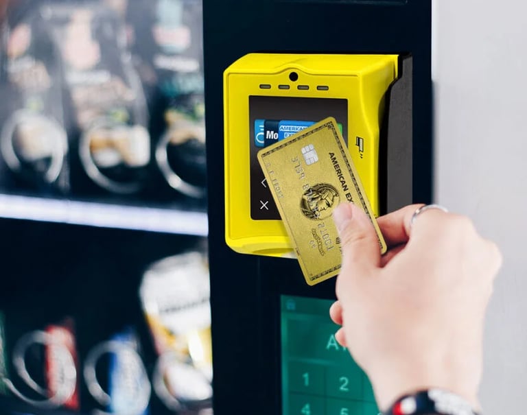 Modern vending machines with offer card and mobile payment options, making purchases quick, convenient, and secure.